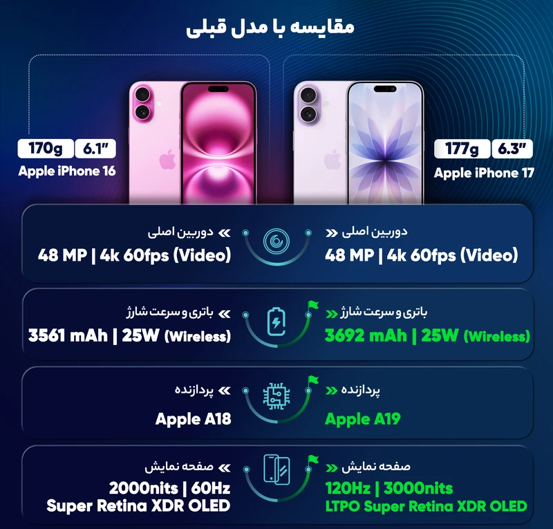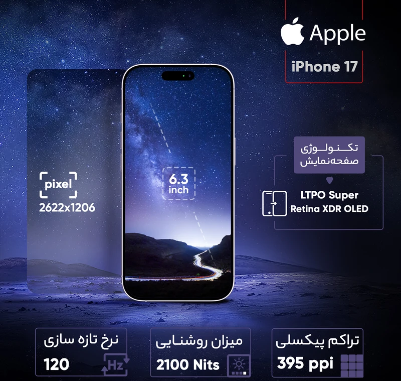 شرکت اپل هر ساله با معرفی نسل جدید آیفونهای خود، استانداردهای تازهای در طراحی، سخت افزار و نرم افزار تعریف میکند. امسال نیز iPhone 17 به عنوان ادامه دهنده مسیر سری محبوب آیفون با تغییرات مهمی در بخش نمایشگر، دوربین و پردازنده معرفی شده است تا ادامه دهنده مسیری باشد که ۱۸ سال پیش استیو جابز فقید آن را آغاز کرد. این گوشی با نمایشگرLTPO Super Retina XDR OLED، سیستم دوربین ۴۸ مگاپیکسلی دوگانه و تراشه A19 روانه بازار شده است. اپل در این نسل تمرکز ویژهای بر روی مقاومت و همچنین کارایی داشته است و قابلیتهایی مانند صفحه نمایش ۱۲۰ هرتزی و پوشش محافظ Cermic Shield 2 را در این گوشی قرار داده است.